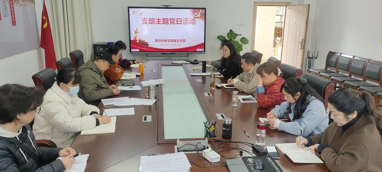 (本网讯刘中华 罗琪)2026年3月13日上午,图书档案馆在西区五楼会议室召开支部主题党日活动暨政治理论学习会,会议由党支部书记汤光恒主持,全体馆员参加。
